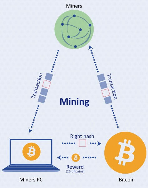 Все переводы Bitcoin фиксируются в общедоступном логе транзакций, они передаются майнерам по цепочке. Работа которых заключается в том, чтобы подобрать один единственный хэш из миллиона комбинаций, который бы подходил ко всем новым транзакциям и секретному ключу, который является гарантией получения награды в 25 Биткоина. Одновременно соревнуются за награду множество «добытчиков», которые пытаются первыми разгадать хэш. Когда он угадан, блок и все транзакции закрыты и майнеры приступают к генерированию очередного блока.